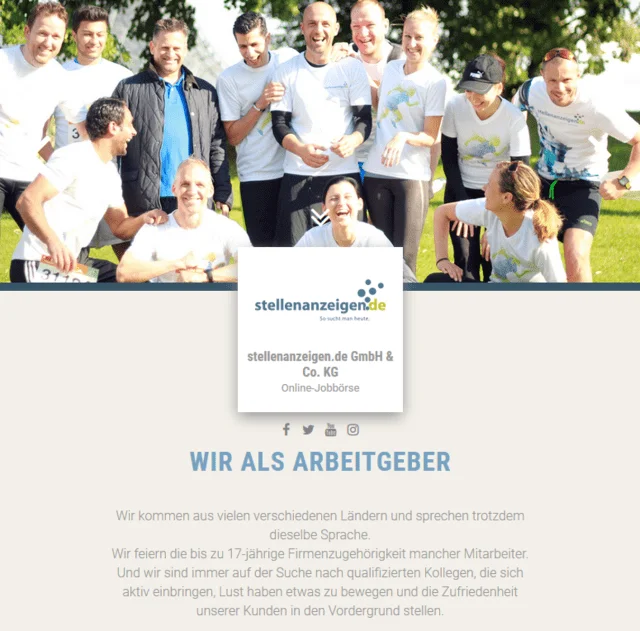 Beispiel Arbeitgeberprofil von stellenanzeigen.de